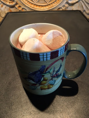 Time to sit down with a guilty pleasure .... hot cocoa!! My all-time favorite is Swiss Miss with marshmallows. I took this picture to show said marshmallow because as soon as you stir the cup, they disappear into nothingness.