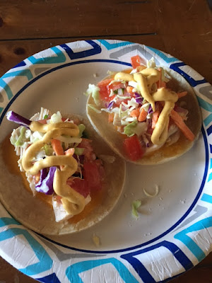 Lunch time came around quickly because you know, I was SO excited to get to Bingo. Tacos are my go-to around here since I always have fresh Cole slaw for Jonathan food. Note to self: next time do NOT buy the spicy Special Sauce. It burns your mouth right nicely!