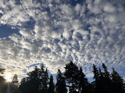 Ohhh there was a chilly breeze in the air this morning, making the clouds look ever so weird, almost like a tornado. I keep waiting for the boot to fall. Surely this weird weather will bring on an earthquake or something weird.