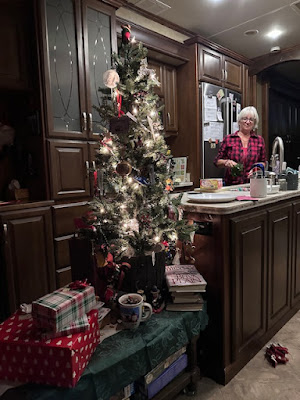 Just look at this cute Christmas tree. All the decorations Patsy and Bill have put up make it so Christmasy and warm. I think I have room for a string of lights over the kitchen sink, but that's about it.