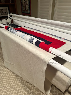 Anyway ... death and taxes are inevitable I guess.  After stitching up two more quilts, they are ready for quilting.  This one is loaded and will be done this morning.  As for the other two ...  company called and needed a place to stay, so I don't know how much I will actually get done.