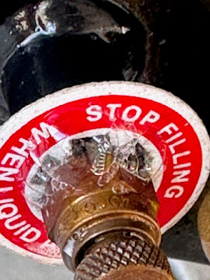 Next up ... a water bottle with soap to check for gas leaks.  Propane actually.  I've never done this before, so I don't know how much dish soap to use.  One good squirt and about a cup of water.  This is the pressure relief valve.  Instantly I saw a bunch of tiny bubbles around the valve.  I waited and sprayed it again, when the big bubbles appeared.