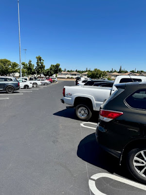 On the way to my truck, this is what I saw. My truck is four feet longer than the parking space. This says something about this part of the country. Though we used to be a farming community, obvious NO ONE drives trucks any more. Nothing but little compact cars can fit in these spaces. I need to find another town to shop in.