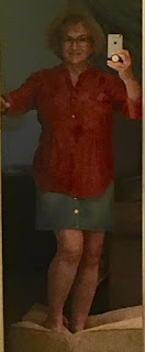 Well here it is folks ... a skirt. I took the picture because you'll probably never see me in one again. Bad picture too, but there is only one long mirror in my house and it's over the tub. Who in the world puts mirrors over the bathtub!! No one wants to see that!!